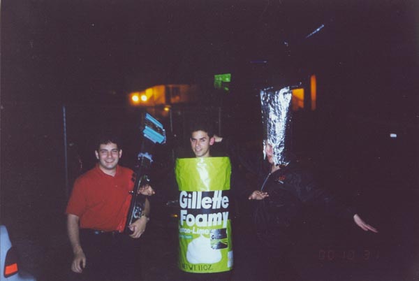 In the spirit of my many cylindrical costumes of the past, Halloween 2000 saw me as none other than a can of shaving cream plus razor, Gillette Foamy lemon lime and a Gillette Mach 3 razor, to be more specific.
