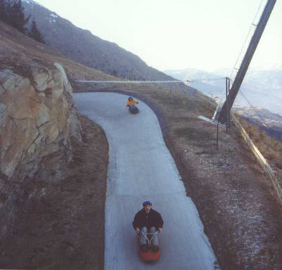 This, straight out of Mario Cart scene, is the Luge race at the top of Bob's peak in Queenstown.