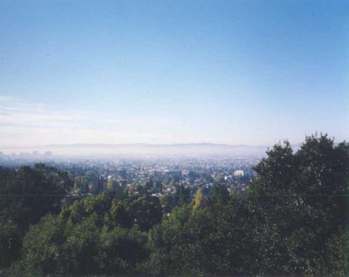 A clear sky view from the balcony of our apartment in the Berkeley Hills.